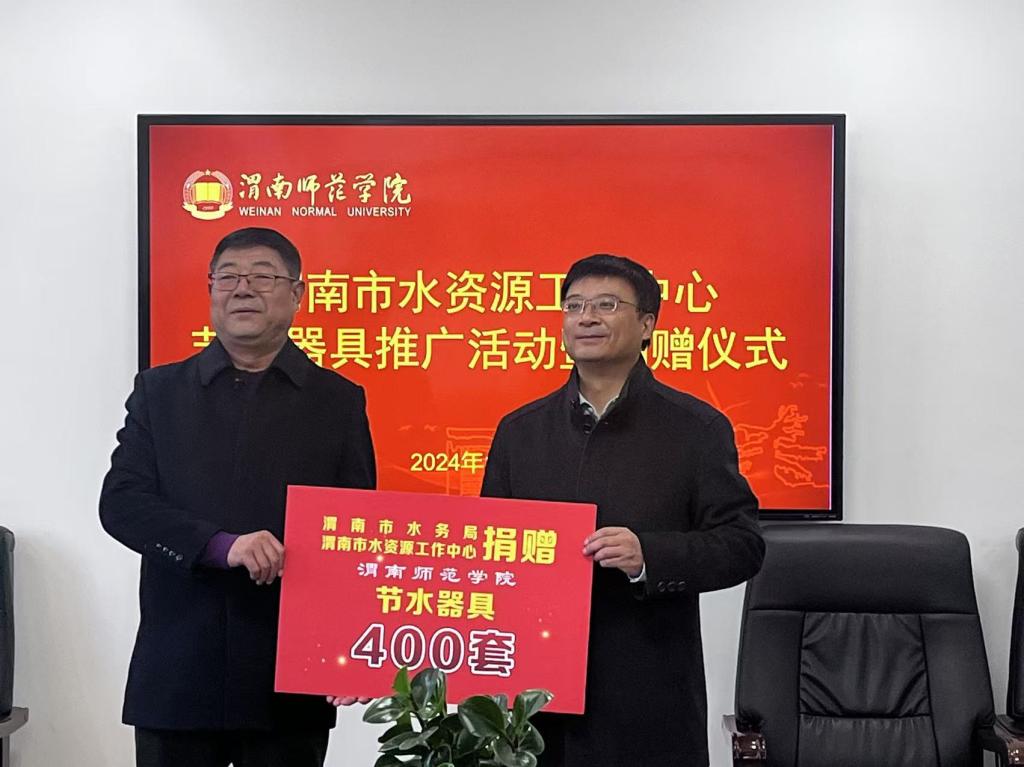 捐赠仪式上,权医平代表渭南市水务局、渭南市水资源工作中心向学校捐赠节水器具400套。学校将充分利用好捐赠的节水器具,最大限度发挥好节水作用,同时进一步加强同水务部门的合作力度,做好绿色生态校园建设。(通讯员 韩彦军 穆峰 审核人 王争辉)