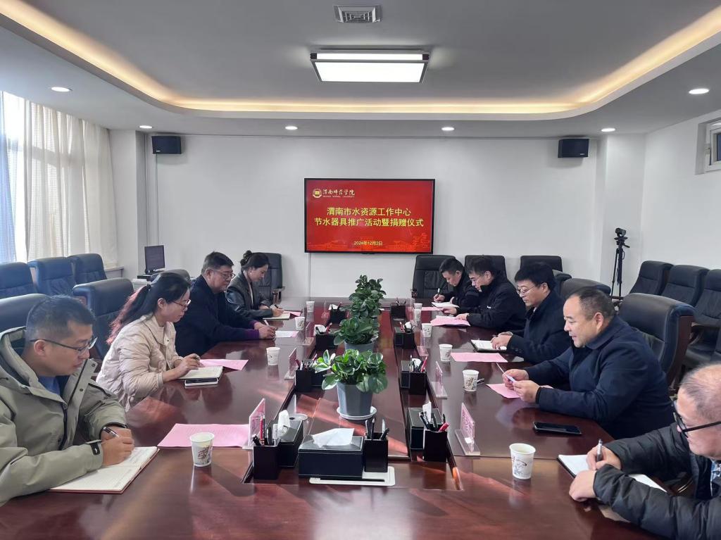 12月2日,学校召开节水节能进校园工作会议暨节水器具捐赠仪式。学校党委副书记常青林,渭南市水资源工作中心主任权医平、副主任拜小娟、节水科科长任利娜、工程师张浩杰出席会议。会议由后勤服务中心党总支书记席景奇主持。