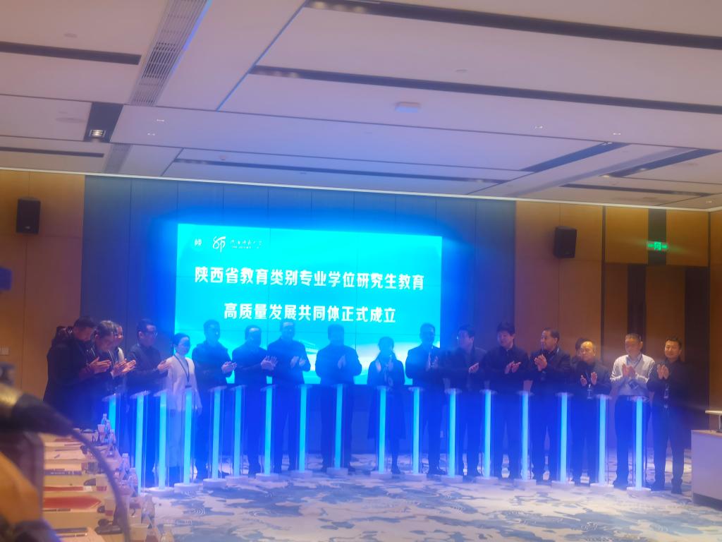 12月10日上午,陕西省教育专业学位研究生教育高质量发展共同体成立大会在陕西师范大学长安校区召开,会议由陕西师范大学主办,省内15所高校以及教育专业学位研究生实践基地代表参会,陕西省教育厅副厅长吴振磊,陕西师范大学党委常委、副校长杨祖培出席会议并致辞,bat365官网副校长卢爱刚、学科建设办公室(研究生部)副主任秦玉伟参加成立大会。