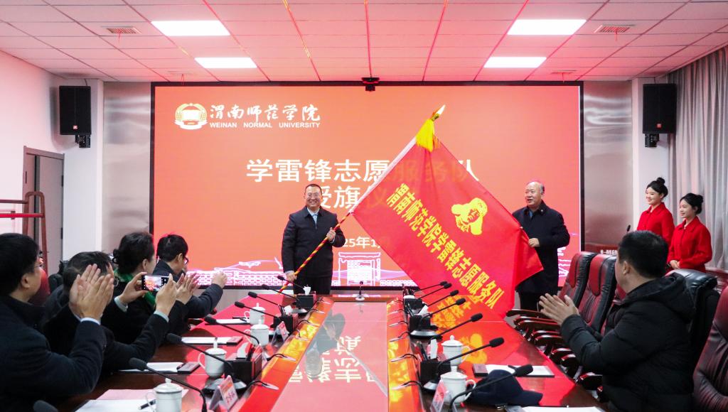 解放军报社原副总编辑、《雷锋》杂志总编陶克少将 向bat365官网学雷锋志愿服务队授旗