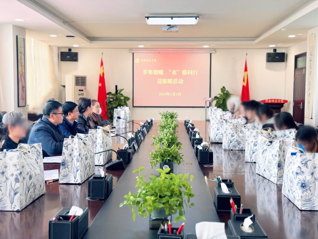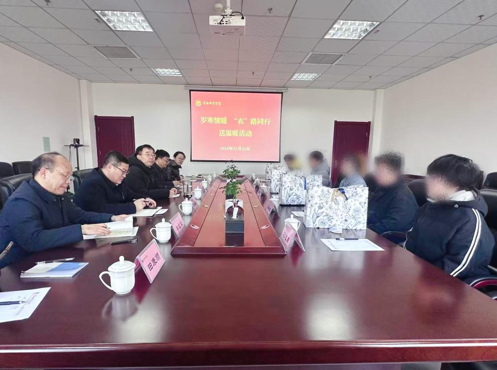 近日,学校在朝阳校区和富平校区分别举行“岁寒情暖‘衣’路同行”特殊困难学生送温暖活动。学校党委书记、校长张守华,党委副书记常青林带着全校师生的深切关爱一起为学校特殊困难学生送上来自学校的温暖关怀与新年祝福。