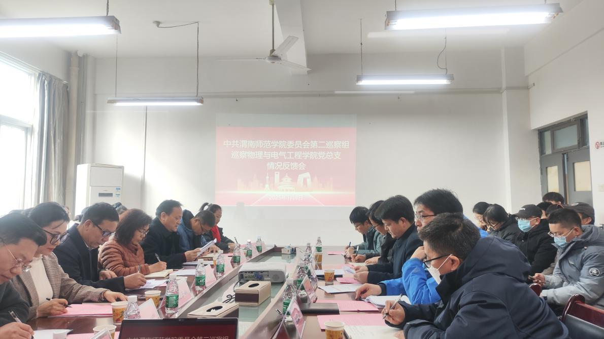 党委巡察办主任刘子毓、副主任王鹏远,第二巡察组副组长高军强及全体成员出席反馈会,物理与电气工程学院领导班子、全体教职工、学生代表参加会议。(通讯员 刘晋 审核人 袁卫)