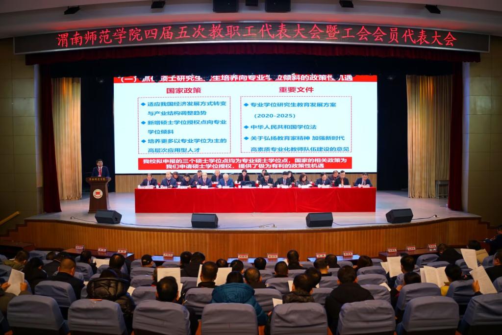 张守华总结了过去一年,全校上下深入学习贯彻党的二十大和二十届二中、三中全会精神,全面贯彻落实习近平总书记关于教育的重要论述和全国教育大会精神,贯通学习贯彻习近平总书记2024年两次来陕考察和历次来陕考察重要讲话重要指示精神,牢记为党育人、为国育才初心使命,秉承“扎根渭南,深耕教育,培养新时代大国良师”办学理念,大力弘扬教育家精神,围绕提高学校人才自主培养质量这条主线,深入推进有组织开展一流本科人才培养、有组织开展科技创新、有组织服务区域经济社会发展,学校各方面工作成效显著,亮点纷呈。张守华从切实增强服务教育强国建设的思想自觉、政治自觉和行动自觉的高度出发,分析了新形势下学校高质量发展过程中的新机遇和新要求。张守华指出,2025年是“十四五”规划收官、“十五五”规划谋篇之年,也是学校申硕攻坚之年、建校65周年。学校要锚定建设特色鲜明的一流师范大学核心目标,更加主动融入和服务区域新发展格局,聚力打好“申硕攻坚、审核评估、机构改革、新区建设、数字赋能”五场硬仗,重点抓好强化党建领航,提升思政工作水平;深入实施学科攀登工程,全力打好申硕攻坚战;深入实施本科提质工程,提高人才培养质量;深入实施人才强校工程,加强师资队伍建设;深入实施科研服务工程,提升科技创新能力水平;深入实施开放办学工程,扩大对外合作交流;深化教育综合改革,完善大学治理体系;加快重大项目建设,持续改善办学条件等八个方面的工作,高质量完成“十四五”规划目标任务,为谱写陕西新篇、争做西部示范作出更大贡献。
