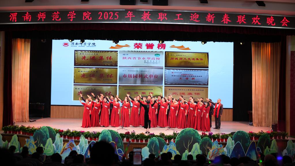2025年教职工联欢晚会的节目由17个二级分会推送,晚会演出现场喜庆祥和,演出人员积极投入,观众热情高涨,台上台下演出人员与观众联欢互动。