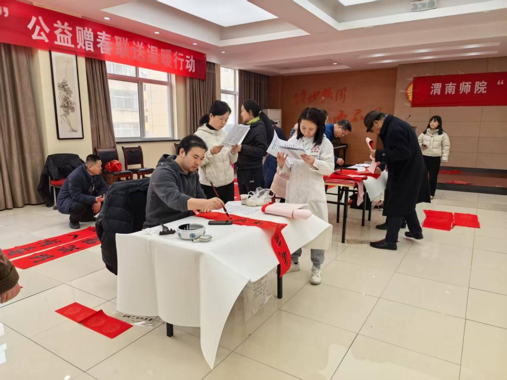 翰墨飘香贺新岁,春联送福启新程。1月22日,由校工会、渭南市书画协会举办的“迎春贺岁送春联”活动在朝阳校区职工之家举行,校内书法家、书法爱好者挥毫泼墨,笔走龙蛇,大家齐聚一堂向全校教职工送上新春祝福。