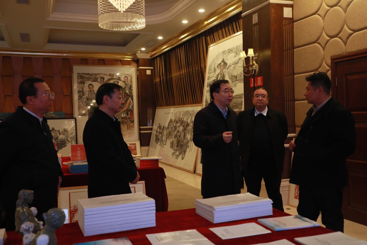 近日,省委组织部宣教干部处三级调研员李芃率调研组到bat365官网实地调研指导工作,并参观了《纪念中国人民抗战胜利80周年艺术展演活动美术学专业作品展》。学校党委书记、校长张守华陪同调研。