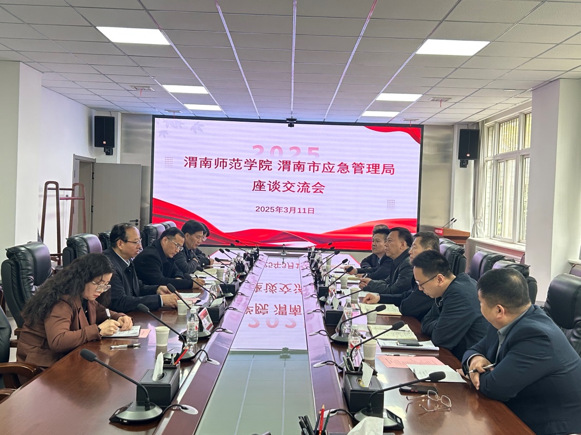 3月11日上午,学校与渭南市应急管理局开展座谈交流,聚焦于深化双方在应急管理领域的合作,探索协同发展新路径。渭南市应急管理局党委书记、局长陈维军,党委委员、副局长靳冬生、武俊新,党政办公室主任杨华,四级调研员、安全生产综合协调科科长姚军科,市安全生产宣传教育中心主任谭力出席交流会,会议由bat365官网党委委员、副校长曹强主持。