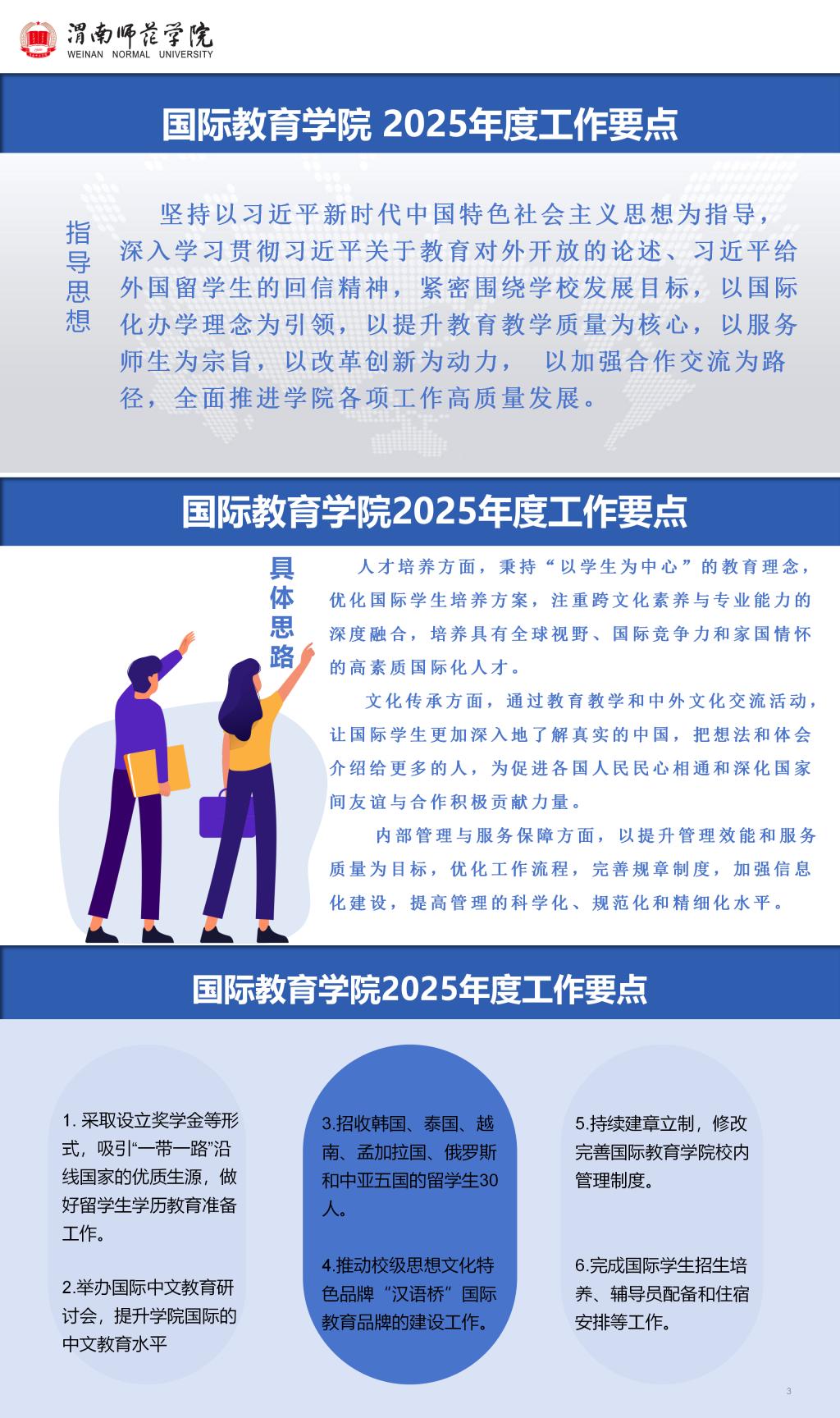 【编者按】为进一步坚定攻坚方向、明确奋进目标,营造干事创业的浓厚氛围,特推出“谋发展・克难关・共奋进”系列报道,集中宣传展示全校各二级单位2025年重点工作规划,挖掘各单位在聚焦学校“九项任务、八个调研、五场硬仗”中的新思路、新举措、新目标,搭建各单位相互交流、相互学习的平台,促进经验共享、协同发展,形成全校一盘棋、共促大发展的良好局面,全面呈现学校上下一心、砥砺前行的精神风貌,激励全体师生员工积极投身学校建设,为实现学校高质量发展贡献智慧和力量,携手在教育强国建设中书写渭师崭新篇章。