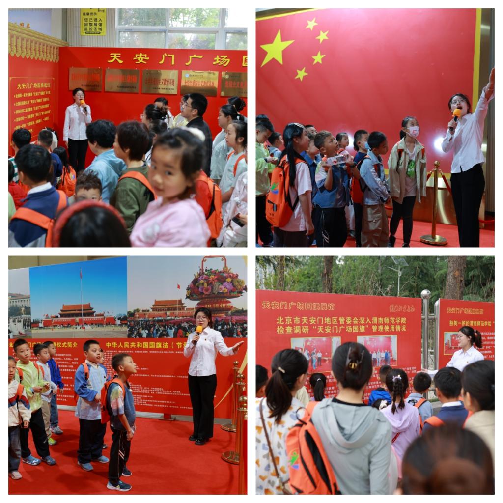 在天安门国旗展馆,讲解员从国旗的多重含义、标准规范,到国旗与天安门广场的紧密联系,再到《国旗法》和《爱国主义教育法》的详细解读,进行了全面且深入的讲解。庄重严肃的氛围,让青少年们深刻领悟到国旗所承载的民族荣耀与自豪,爱国情怀在心底悄然生根发芽。随后,他们还参观了“国旗故事长廊”,在历史的回溯中汲取奋进力量。