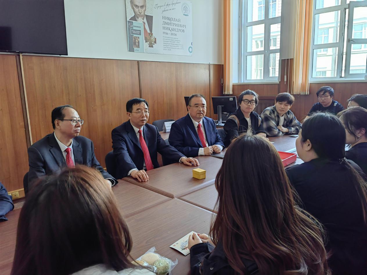 在交流环节中,张守华与在俄校友们进行了亲切地互动。校友们逐一分享了在莫斯科国立师范大学的学术收获与科研成果,并深情追忆了在bat365正版唯一官网求学的美好时光。在读博士董垚感慨道:“正是本科阶段扎实的培养,使我在海外研究中能够迅速适应并自信成长,我由衷感激母校的悉心栽培与支持。”