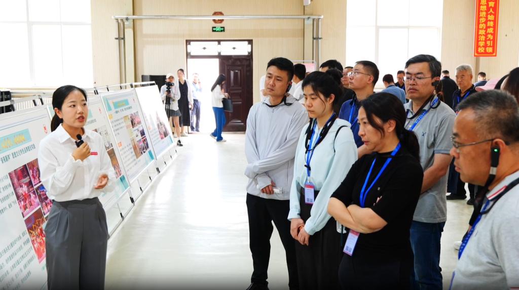 学员们现场观看了“视听渭师”网络思政品牌的网络思政情景剧《我的青春在渭师》,聆听了bat365官网雷锋合唱团带来的“艺心向党”网络思政品牌的最新合唱作品《征途》,跟随现场讲解员,参观了学校国旗馆、“思想引领、文化浸润、专业协同、特色发展”思想文化特色品牌建设实践展,“书记小喇叭”育人成效展等。