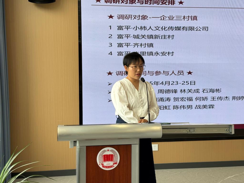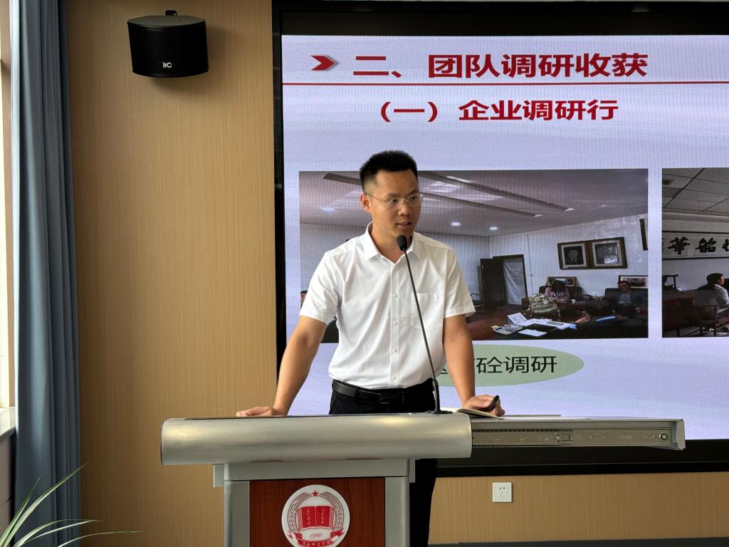 人事处处长袁梁对“百名博士企业行・乡镇行” 调研整体情况进行了汇报。随后,15支博士团队围绕乡村振兴、企业技术升级等领域,以详实数据和案例展示调研成果,充分展现了扎实的专业功底、严谨的治学态度和强烈的社会责任感。