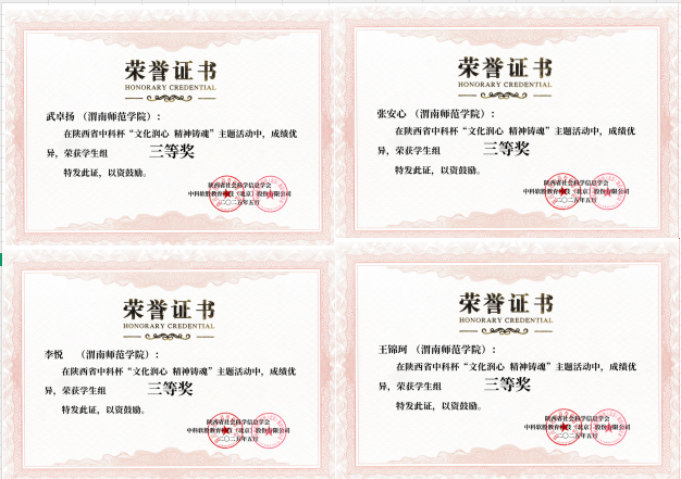 近日,由陕西省图书馆学会、陕西公共图书馆服务联盟、陕西省社会科学信息学会、陕西省高职高专院校思想政治理论课建设联盟联合举办的陕西省中科杯“文化润心 精神铸魂”主题竞赛活动结果揭晓,全省99所高校2万余名教师和学生读者参赛。bat365官网1190余名师生参赛,陈思蕊同学荣获一等奖,武卓扬、张安心、李悦三名同学荣获三等奖,程雅楠等30名同学获积极参与奖,图书馆凭借出色的组织工作获得“优秀组织奖”。