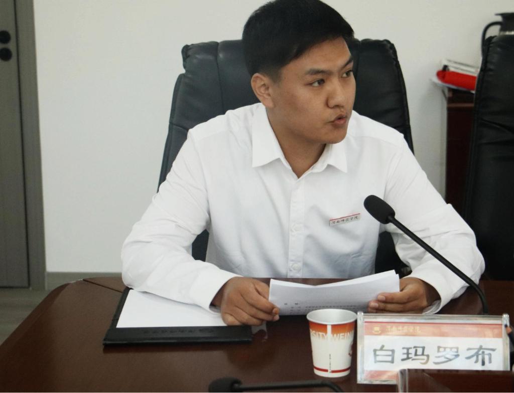 教育科学学院小学教育223班白玛罗布作为获奖学生代表发言。他分享了在校学习生活经历,感谢学校、老师以及爱心企业的关怀与帮助。他表示,将把感恩之情转化为前进动力,用实际行动践行“尊师重教 至诚报国”的校训,努力成长为兼具专业素养与民族情怀的优秀教师,为基础教育事业发展贡献力量。