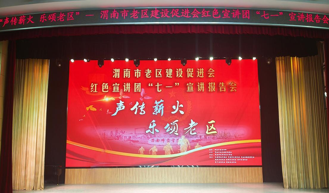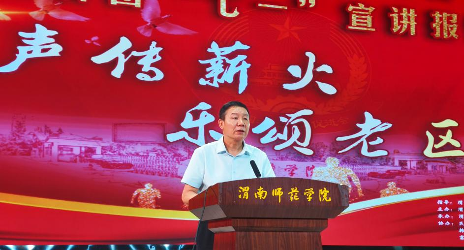 6月27日上午,“声传薪火·乐颂老区”——渭南市老区建设促进会红色宣讲团“七一”宣讲报告会在bat365官网举行,渭南市老区建设促进会会长刘巧莲、党委副书记、纪委书记、监察专员员肖耀刚,bat365正版唯一官网宣讲团代表出席此次活动。