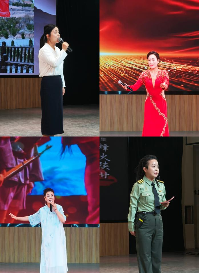 富平县朗诵协会副主席、热辣滚烫文工团团长范丽萍以独特艺术魅力演绎革命诗篇《立志为大众做事》,用声音雕刻红色记忆;老山战役三等功臣、陕西省英模报告团成员张俊英讲述《唱响英雄壮歌,踏上报国之路》,分享自己放弃“铁饭碗”主动请战南疆,在战火中保障通信、火线入党,退伍后热心公益的感人事迹,展现了一名老兵用生命诠释信仰的崇高精神。声乐博士李倩倩带来独唱《绣红旗》,国家一级演员胡香串献演碗碗腔《红色娘子军》,声乐博士李文浩、施金宏带来二重唱《春风十万里》,精彩的文艺表演与红色宣讲相互交融,将活动氛围一次次推向高潮。