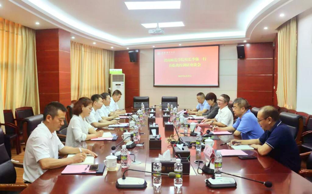 随后,李强一行走访琼台师范学院,琼台师范学院校长刘湘洪代表学校对李强一行的来访表示欢迎,并介绍了琼台师范学院的办学历史、人才培养、学科建设和学校发展情况。李强校长介绍了到访目的,交流了1+M+N方面的基本情况,双方围绕人才培养、教学质量监控、校地合作、继续教育、国有资产经营等工作进行了交流。