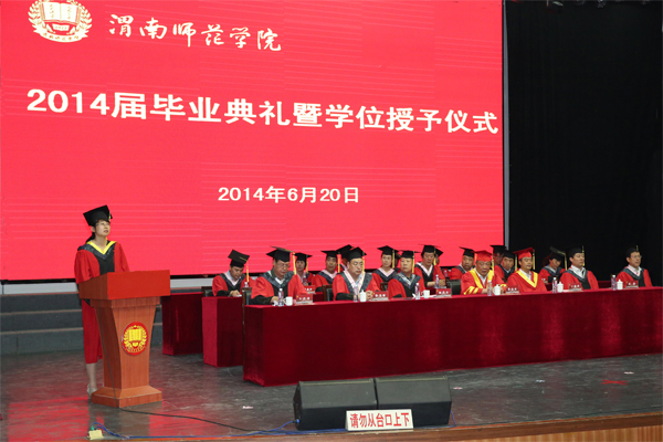 6月20日上午,bat365官网2014届毕业典礼暨学位授予大会在陶然楼音乐厅隆重举行。学校领导、学校学位评定委员会委员、各二级学院副处以上干部、教学秘书、毕业班辅导员、校级优秀毕业生、优秀学生干部,各二级学院学生代表参加了本次毕业典礼暨学位授予大会,大会由副院长王君龙教授主持。