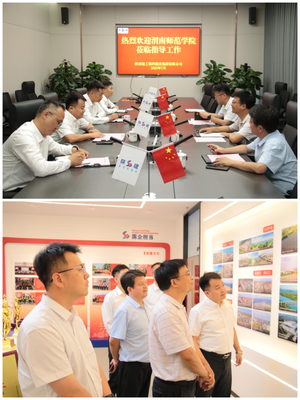 在陕西建工第四建设集团有限公司,公司党委委员、纪委书记罗彦雷、常务副总经理杨晨晨回顾企业曾与学校共处渭南地区的情感纽带和历史渊源,并介绍了企业西迁新疆服务地方发展的国企担当与拓展海外业务的进取精神,同时就企业的用人需求作以交流,表示新疆地区既需要特别能吃苦、责任心强且懂技术的毕业生,也需要懂专业又会俄语的学生,希望学校能根据企业岗位需求,制定符合市场需求的人才培养方案,融入企业文化与岗位技能标准,确保培养的人才“用得上、留得住、发展好”。