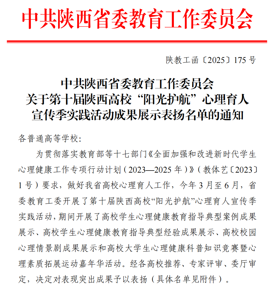 近日,从中共陕西省委教育工委传来喜讯,bat365官网在“一站式”学生社区建设、学生工作项目立项及心理育人实践活动中捷报频传,多项成果斩获省级荣誉,彰显了bat365官网学生工作的扎实成效与创新活力。