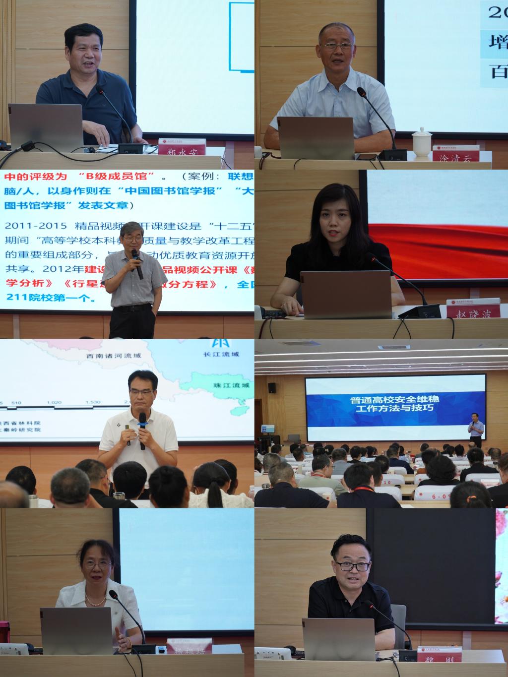 五天时间里,南京航空航天大学原党委书记郑永安教授、青海师范大学校长涂清云教授、陕西师范大学原副校长杨祖培教授等8位专家学者先后授课,围绕“辩证思维在实践中的运用”“高校学科建设与科研管理提升”“增强驾驭风险本领”等主题作深度报告。
