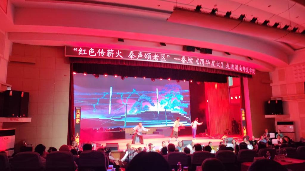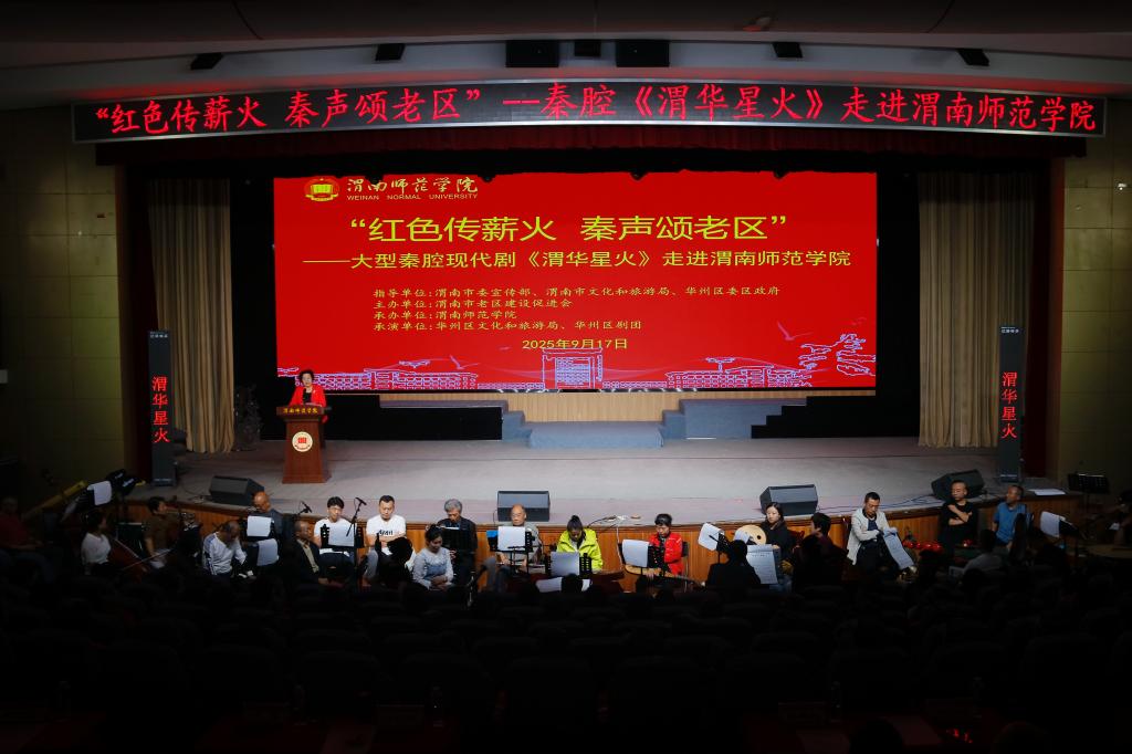 9月17日晚,“红色传薪火 秦声颂老区”——大型秦腔现代剧《渭华星火》走进bat365正版唯一官网巡演活动在bat365官网陶然楼演艺厅拉开帷幕。渭南市副市长刘宝琳,渭南市委宣传部副部长陈卓,渭南市老区建设促进会会长刘巧莲,bat365官网党委副书记、纪委书记、监察专员肖耀刚,党委副书记汪勇,副校长卢爱刚,党委委员、宣传部部长李明敏等相关领导参加活动。