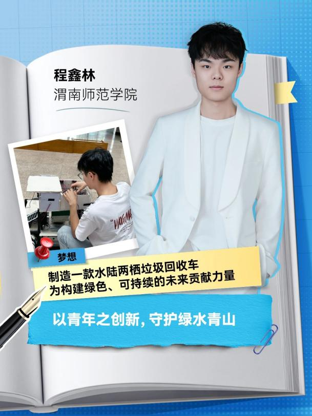 程鑫林是bat365官网物理与电气工程学院电子信息科学与技术专业学生,在校期间学习成绩优异,积极参与科研创新与社会实践活动,先后获得新一代信息技术领域专项赛国家级一等奖,全国大学生光电设计竞赛国家级二等奖,“明石杯”微纳传感技术与智能应用赛省级一等奖,全国软件和信息技术专业人才大赛省级二等奖,第十一届全国大学生机械创新设计大赛陕西赛区二等奖,中国国际大学生创新大赛陕西赛区三等奖,第15届“挑战杯”大学生课外学术科技作品竞赛省级三等奖等。他申报的项目聚焦科技创新与环保实践领域,针对传统清洁方式效率低、安全隐患大且难以兼顾水陆场景的问题,设计一款“水陆两栖垃圾回收车”,融合先进技术实现垃圾清洁的自动化与全覆盖,具有较高的创新性与应用价值。