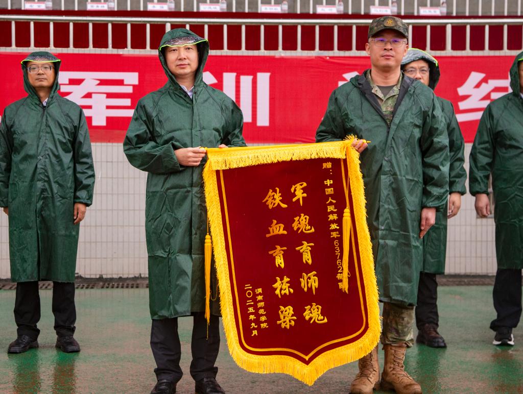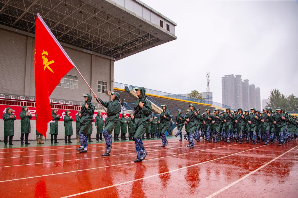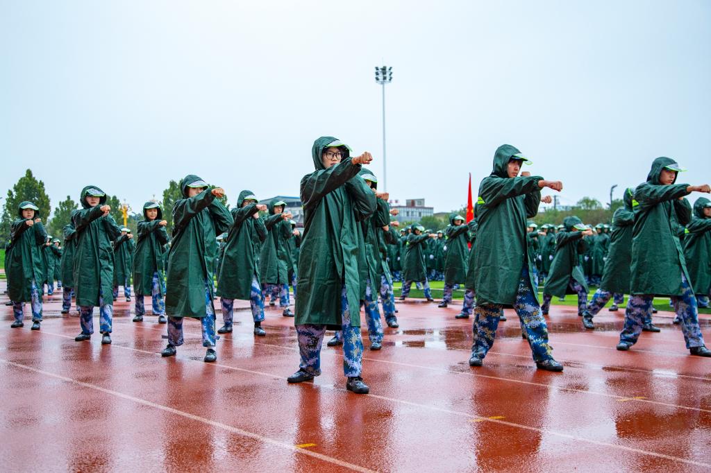 在雨声中,军训总结大会圆满画上句号。雨水浇湿了衣裳,却浇不灭青春的迷彩热血;寒意侵入了身体,却冻不住我们斗志昂扬的坚定信念。这场雨中的检阅,如同一堂生动的“成长课”,让十四天的汗水与坚持凝聚为一股强大的前行力量。军魂师魂,铸魂育人,正是在这样的磨砺中,新一代学子以更坚毅的姿态宣告:我们已准备好,用迷彩青春书写未来的壮丽篇章!(通讯员 刁中堃 审核人 田耿辉)