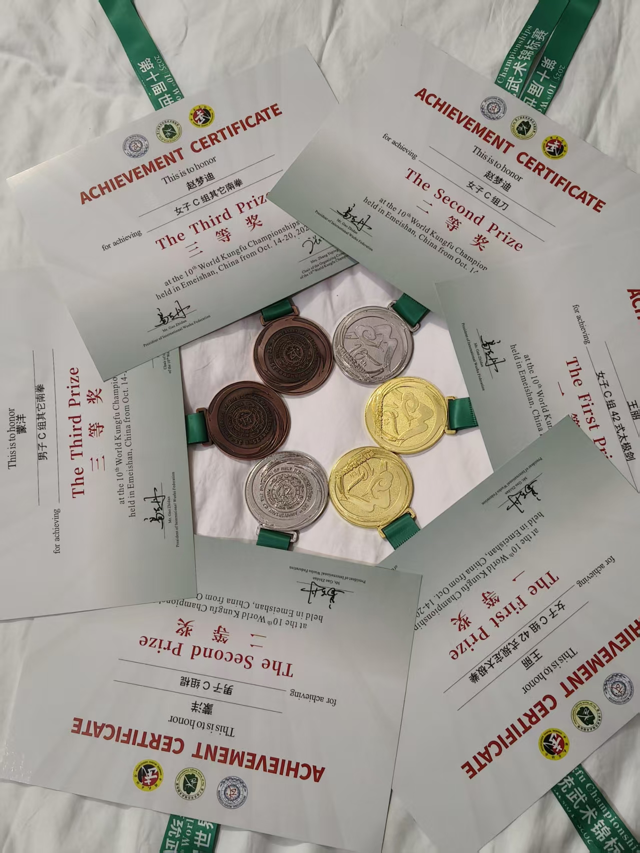 在校领导的关怀和大力支持下,由体育学院院长李春兰任领队,王军、蔡龙两位教师任教练员,从校武术队选派三名运动员参加此次比赛。他们凭借精湛技艺与稳定发挥,斩获2金、2银、2铜的优异成绩,在世界级舞台上展现了中国传统武术的魅力与师院学子的风采。