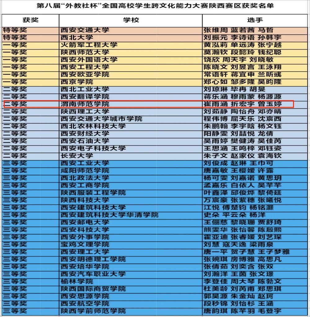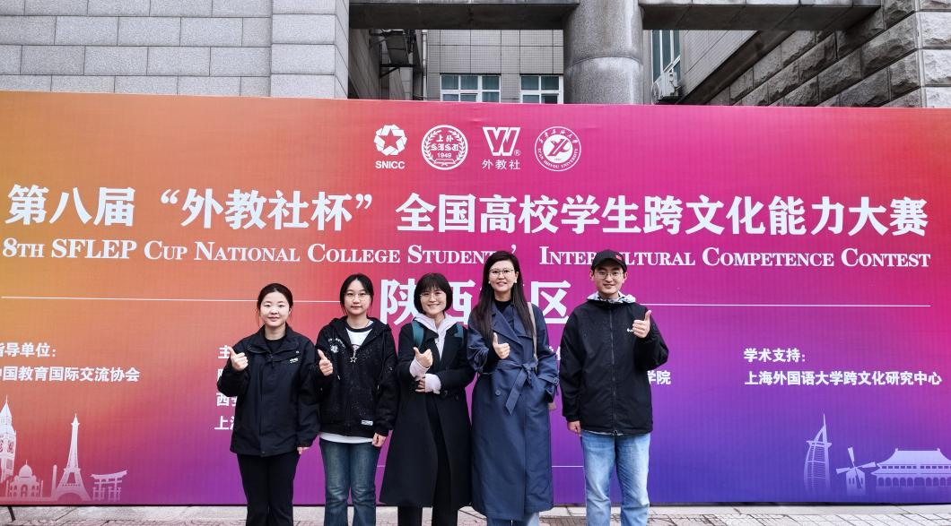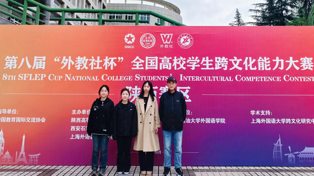10月19日,第八届“外教社杯”全国高校学生跨文化能力大赛陕西赛区比赛在西安石油大学圆满落幕。bat365官网派出由外国语学院郝嘉亮、卢峰、孙莹三位教师共同指导,外国语学院学生崔雨涵与人文学院学生折宏宇、曾玉婷联合组成团队。该团队凭借扎实的跨文化知识、出色的沟通技巧及默契的团队协作在比赛中荣获省级二等奖。