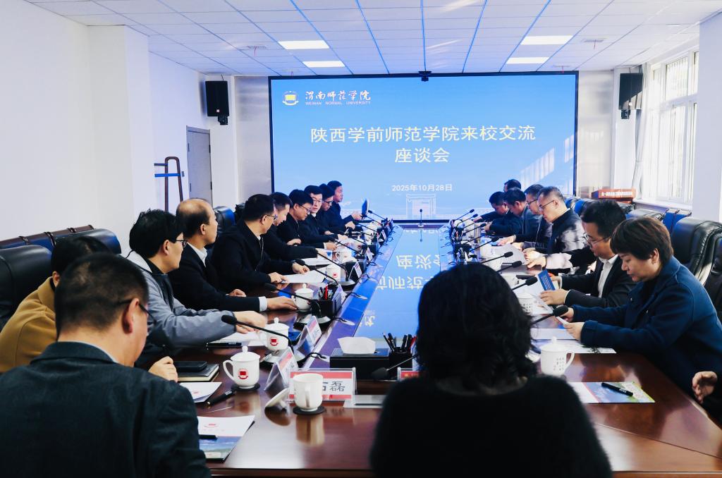 10月28日,陕西学前师范学院党委书记、校长张健,党委副书记权秋虎、副校长王彬武一行来校考察交流。校长李强、党委副书记常青林、副校长曹强出席座谈会。