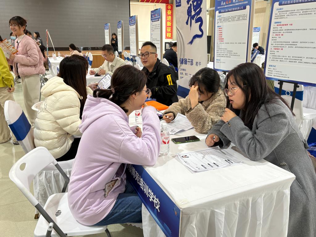 学校党委副书记、纪委书记、监察专员肖耀刚,党委副书记汪勇、常青林,副校长曹强,陕西省人才交流服务中心职业介绍部副部长韩芳等深入招聘会现场,与用人单位代表及毕业生亲切交流,详细了解供需双方需求。