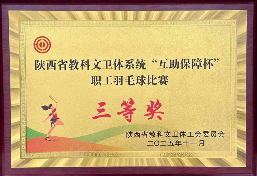 10月30日至11月2日,由陕西省教科文卫体工会主办,西北农林科技大学承办的“中国梦·劳动美——凝心铸魂跟党走 团结奋斗新征程”陕西省教科文卫体系统职工羽毛球比赛在西北农林科技大学举行。bat365官网教职工羽毛球代表队凭借出色的发挥和顽强的拼搏荣获三等奖。