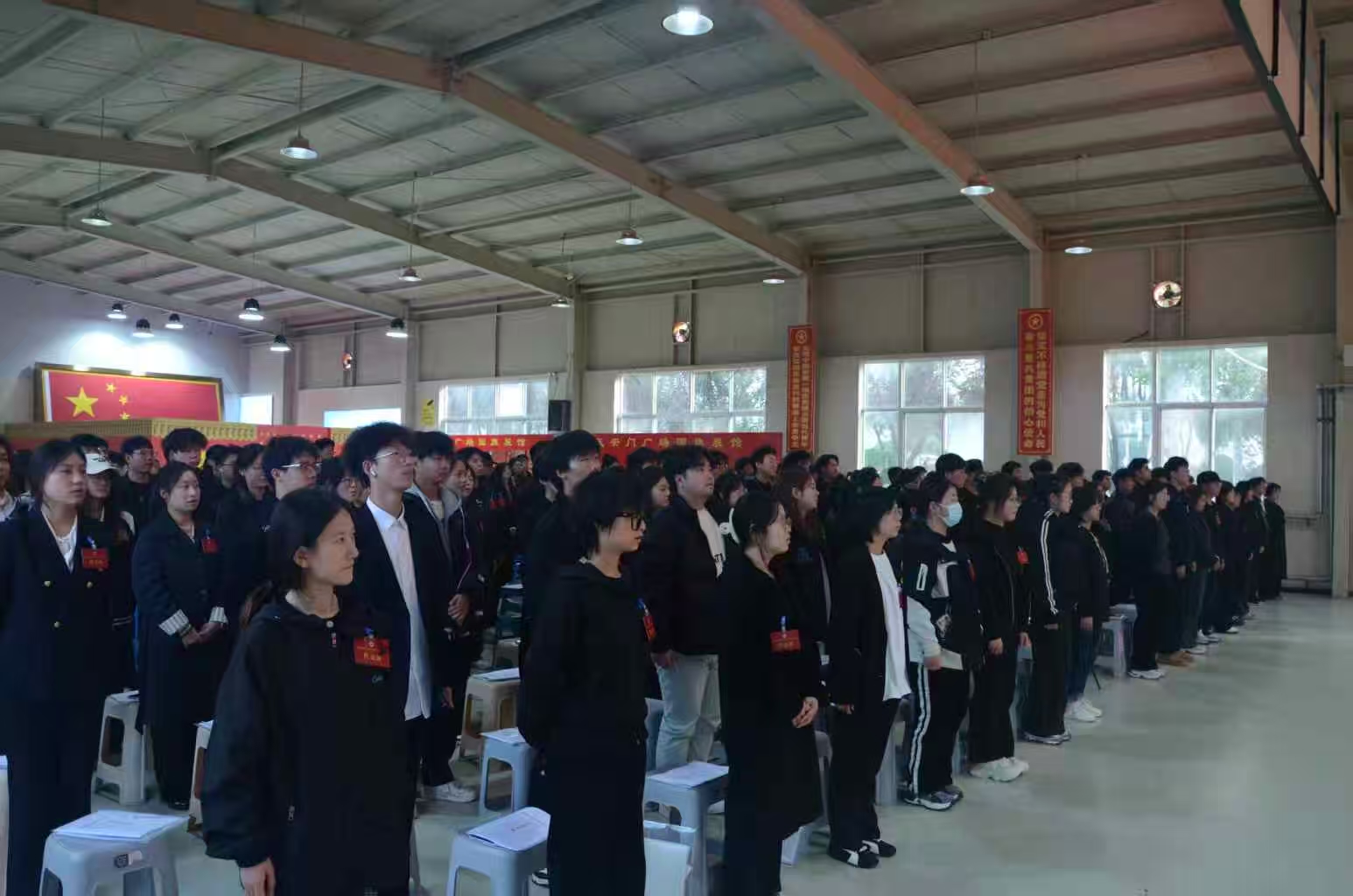 富平校区学生代表在国旗馆合影留念
