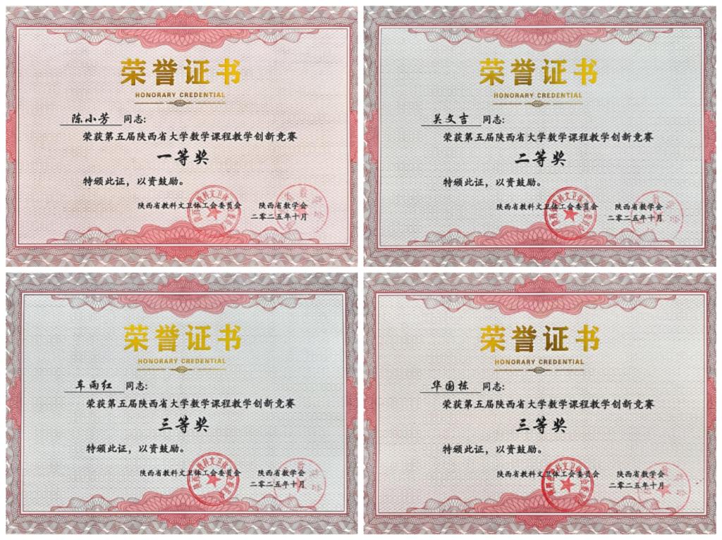 会议期间,颁发了“第五届陕西省大学数学课程教学创新竞赛”各类奖项。bat365官网荣获“优秀组织奖”,陈小芳老师获一等奖,关文吉老师获二等奖,车雨红与华国栋老师分获三等奖。