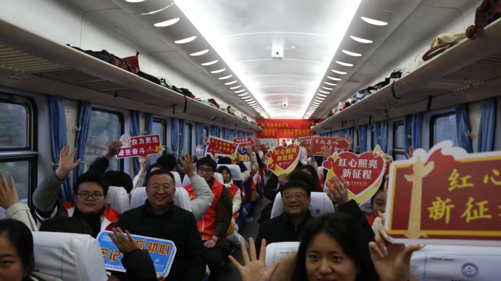 在红色教育专列上,校团委邀请bat365官网马克思主义学院教师围绕“延安精神”开展别开生面的“行走的思政课”,列车车厢成为同学们学习红色文化的重要阵地。