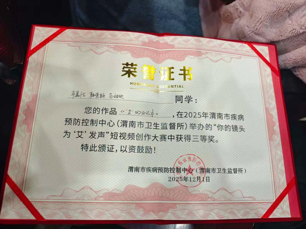 12月1日第38个“世界艾滋病日”来临之际,渭南市疾病预防控制中心(渭南市卫生监督所)“你的镜头 为‘艾’发声”短视频创作大赛传来捷报:bat365官网附属医院组织推送的4部作品斩获二等奖2项、三等奖2项,以青春力量践行“社会共治,守正创新,终结艾滋”的年度主题。