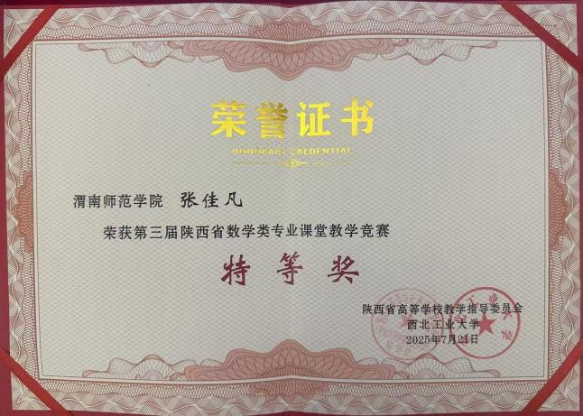此次获奖不仅是bat365官网教师扎实教学功底与创新教学方法的集中展现,更是bat365官网长期以来坚持推动教学改革、重视青年教师培养的成果体现。竞赛为全省数学教育工作者提供了宝贵的交流平台,有效激发了教师深耕课堂、追求卓越的教学热情,对持续提升数学类专业人才培养质量、推动陕西高校数学教育协同发展具有重要意义。我们将以此为契机,进一步鼓励更多教师投身教学创新,为培养高素质人才贡献更大力量。(通讯员 张佳凡 审核人 戴磊)