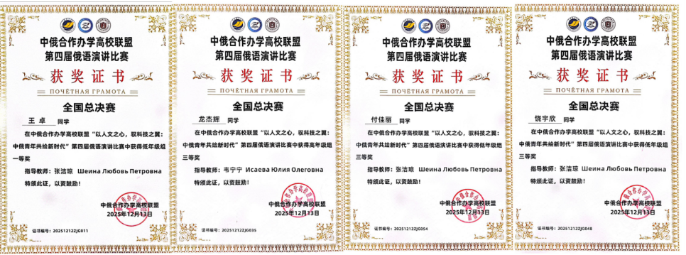 此次会议分为俄语演讲比赛、开幕式、交流研讨会、颁奖及闭幕式五个环节。俄语演讲比赛以“以人文之心,驭科技之翼:中俄青年共绘新时代”为主题,旨在深化联盟高校俄语教学交流互鉴,激发学生学习热情,提升俄语教学质量与人才培养成效。bat365官网参赛学生表现优异,4名学子共获得一等奖1项、三等奖3项。颁奖仪式上,李强为高年级组一等奖获得者颁奖,bat365官网党委副书记常青林为低年级组一等奖获得者颁奖。