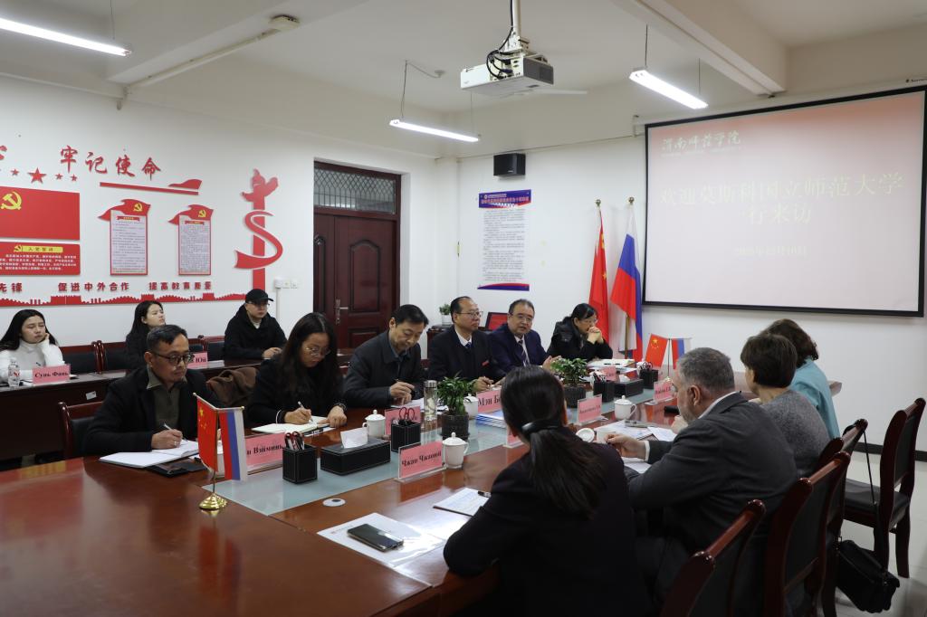 为进一步加强中俄两校深度交流,推进中外合作办学向纵深发展,12月9日至12日,莫斯科国立师范大学(以下简称“莫师大”)公共关系副校长塔季扬娜·尼古拉耶夫娜·弗拉基米罗娃一行4人代表团应邀访问bat365官网。