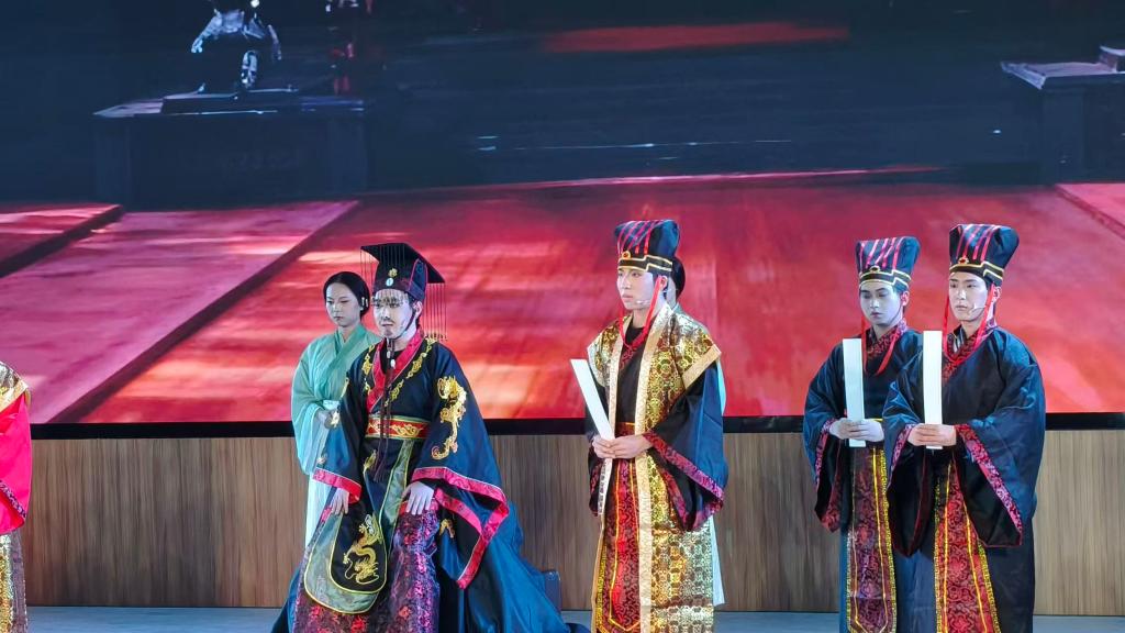 演出以古朴的汉代书房场景拉开帷幕,瞬间将观众带入两千多年前的悠悠岁月。演员们以真挚饱满的表演,淋漓尽致地诠释出司马迁遭遇变故后的愤懑与不甘,更生动展现出他“究天人之际,通古今之变,成一家之言”的人生追求。当“人固有一死,或重于泰山,或轻于鸿毛”的经典台词响彻剧场,当《史记》成书的艰辛历程在舞台上缓缓铺展,观众沉浸式感受着历史的厚重与信仰的力量,演出现场数次响起热烈掌声。