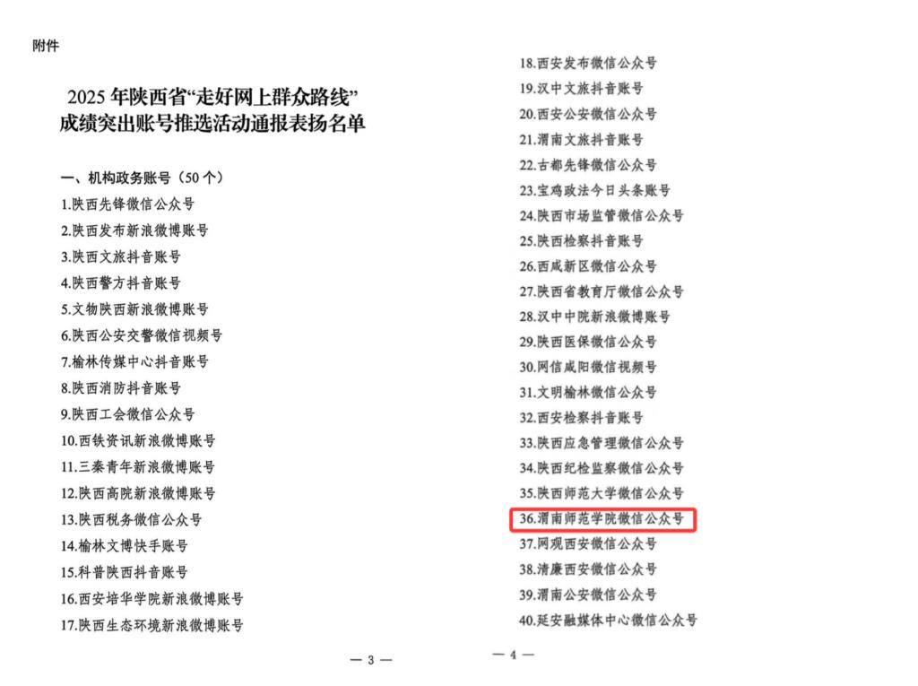 1月8日,陕西省委网信办通报了2025年陕西省“走好网上群众路线”成绩突出账号名单。“bat365正版唯一官网”微信公众号首次成功入选。