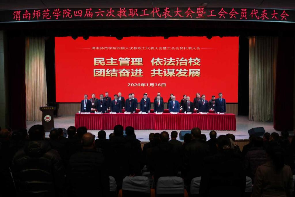 郭强强调,2026年是“十五五”开局之年,是学校聚势突破、整体提升的关键之年。站在新的发展起点,学校明确了“建设特色鲜明的地方一流师范大学”的奋斗目标,明晰了“1385”总体发展思路。他要求,谱写发展新篇、建设一流渭师,要坚持在正确政治方向上坚定前行,切实做到党委行政工作推进到哪里,“双代会”工作就开展到哪里,力量就汇聚到哪里;要坚持在提升办学层次水平上攻坚突破,奋力打赢关乎学校未来的申硕攻坚硬仗,坚持德育为先、五育并举,打造“红色文化+师范素养”双育体系,更加主动、全面、深度融入渭南,不断增强服务区域经济社会高质量发展的支撑力;要坚持在增进团结民主上为民谋福,多做强信心、聚民心、暖人心、筑同心的工作,把民之所望作为责之所向,将履职触角延伸到师生群众中去,多听师生的“心里话”,多谋群众的“幸福策”,让“双代会”工作更接地气、更顺民心、更具实效。学校也将持续加大民生投入,着力解决师生关切,不断提升师生的获得感、幸福感和安全感,共同书写渭师高质量发展新篇章。