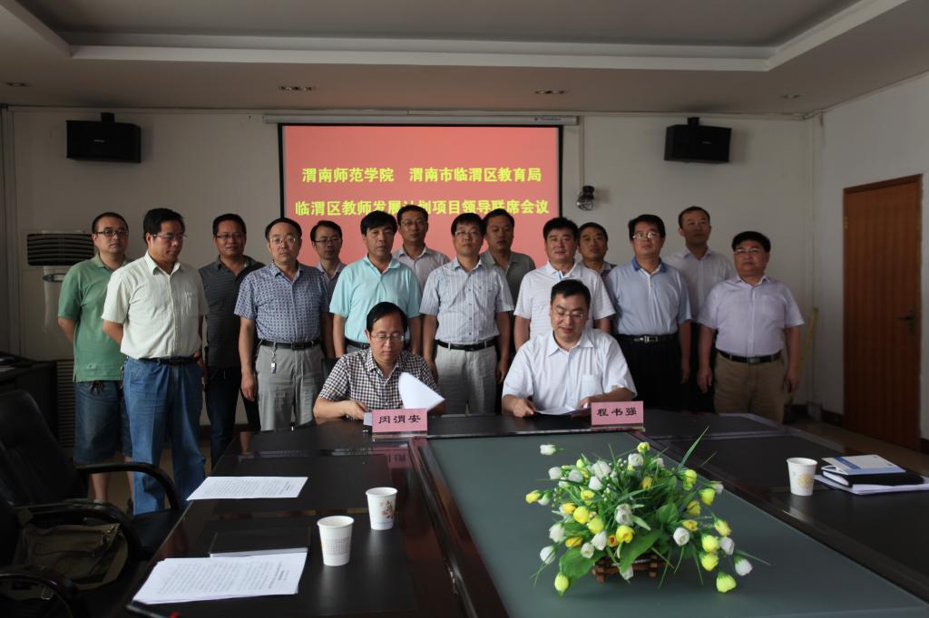 与会人员研究成立了临渭区教师专业发展计划项目工作领导小组,并讨论确定了项目实施计划。双方商定,在临渭区各镇初中、中心小学共建教师教育协同创新实验区基地学校,接纳bat365官网师范生的教育实习、教育见习等实践教学活动,与bat365官网教师合作开展教育研究及学术交流,协调安排bat365官网教师的教育调研活动;bat365官网选派师范生以学期为单位到基地学校实习,并在bat365官网建立临渭区教师培训基地,对临渭区教育局选派的教师进行业务提升培训。会议双方还表示,今后将继续深化合作,共同探索和拓展师资培养的新途径,实施师资培养新项目,实现培养高素质师资合作共赢的目标。
