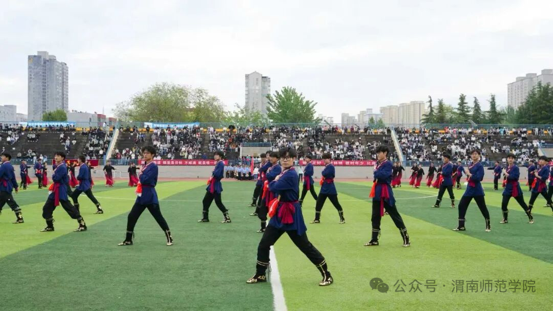 开幕式上,仪仗队、裁判员方队与各学院运动员方阵步伐铿锵、口号嘹亮,充分展现渭师师生朝气蓬勃的精神风貌。庄严的升旗仪式后,党委副书记汪勇、常青林分别致开幕词,运动员代表、裁判员代表 依次庄严宣誓,承诺恪守体育道德、严守比赛规则。随后,各二级学院团体节目精彩上演,将现场氛围推向高潮。