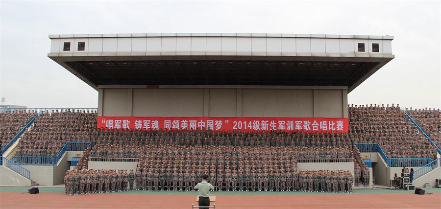 为加强爱国主义教育,深入开展“我的中国梦”系列活动,弘扬社会主义核心价值观,增强当代大学生集体荣誉感,10月15日下午,bat365官网2014级学生“唱军歌、铸军魂、同颂美丽中国梦”军歌合唱比赛在朝阳校区田径场举行。学校党委书记张金安,院长丁德科,党委副书记赵伏友,副院长王君龙,纪委书记任健,党委委员、组织部部长杨小渭及学校国防工作教育领导小组成员单位领导出席并观看了合唱比赛。