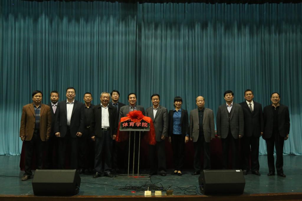 党委副书记赵伏友宣读体育学院成立及领导班子任命相关文件,党委书记张金安为体育学院揭牌。在大会发言阶段,教育与公共管理学院院长梁艳玲对体育工作做了回顾与总结,对体育学院的成立表示出极大地支持与合作。体育学院党总支书记、院长张虎代表体育学院全体师生对学校党委的决定和安排进行表态,他表示坚决服从组织安排,带领领导班子成员,与全院教职工同心同德,开拓进取,共同把体育学院建设好。