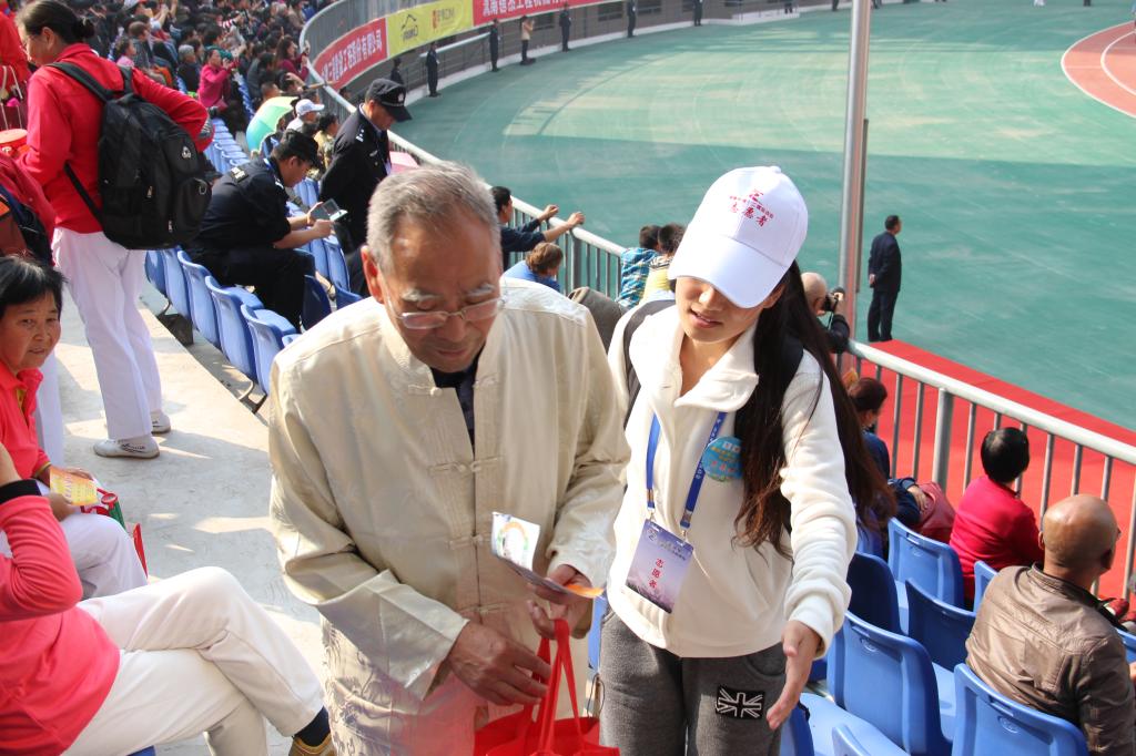为做好市运会志愿服务工作,学校党政领导高度重视,并要求具体组织部门精心组织,合理安排,做好服务,提前做好志愿服务学生的培训工作。校团委根据学校要求,积极与组委会进行接洽,重点做好了志愿服务学生通用知识、礼仪服务和岗位实训的培训工作,帮助志愿者了解和掌握服务内容与工作技能。校社团联合会、校阳光志愿者协会组织150名学生参加志愿服务,主要负责各个通道口的安检检票、主席台和贵宾区的接待、引导参加开幕式观众入场以及背景墙的布置。在安检观众入口、贵宾区入口、运动员入口,志愿者们轮流上岗,在各自的服务岗位上恪尽职守,无私奉献,用认真踏实的服务彰显了师院志愿者风采。