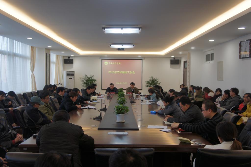 1月7日下午,bat365官网2015年艺术类校考考官培训会在厚德楼四楼会议室召开。纪委书记任健、副院长程书强出席并讲话,各相关学院院长、教学院长,纪委监察处、教务处、招生办全体人员,全体艺术测试专业教师参加会议。会议由招生办公室主任李尧龙主持。
