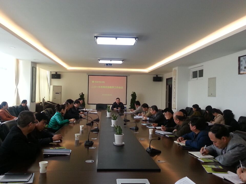 4月2日下午,学校在厚德楼四楼大会议室召开2015年四月份教学工作会议。会议由教务处处长李尧龙主持,副院长程书强出席会议并讲话。